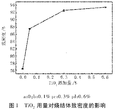 2.1Ti02用量對燒結(jié)體致密度的影響
