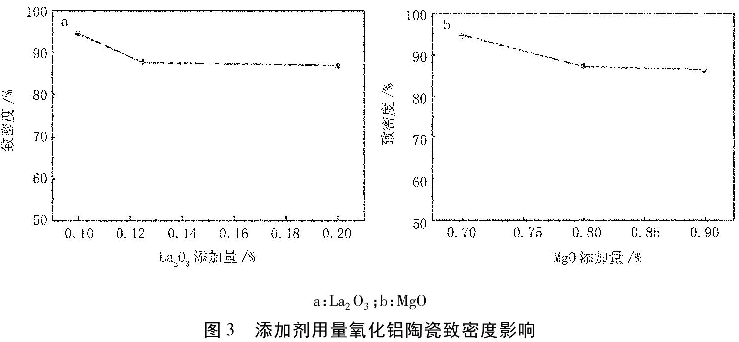 2.Mg0和La203復(fù)合添加,可以產(chǎn)生少量液相提高高純氧化鋁陶瓷的致密度,但添加量不宜過多。