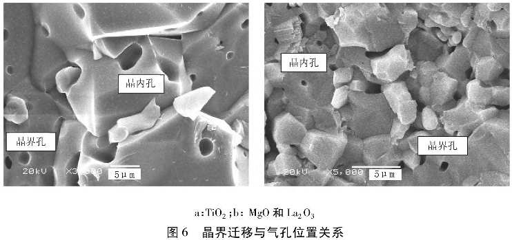 3.Mg0和La203復(fù)合添加可以產(chǎn)生第二相物質(zhì),促進晶粒正常生長,減小晶內(nèi)孔的數(shù)量。