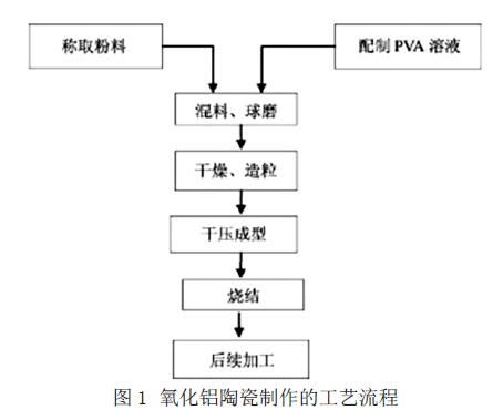 氧化鋁的制作主要采用的材料是三氧化二鋁,同時以氧化鎂作為試驗的添加劑和催化劑。試驗中主要采用的設(shè)備有:①燒結(jié)爐,由于氧化鋁的熔點(diǎn)很高,所以本次試驗主要采用很高溫電爐。②球磨機(jī),主要是將破碎之后的材料再進(jìn)行進(jìn)一步的粉碎工作。③真空干燥箱,由于氧化鋁的制作是一個化學(xué)過程,其制定過程就是一個氧化過程,所以該反應(yīng)的過程需要保證一個真空的環(huán)境,干燥箱在工作的同時可以往內(nèi)部空間注入足量的不含氧的氣體,保證反應(yīng)中各個物料可以隨時保持干燥的狀態(tài)。④壓力成型設(shè)備。⑤在氧化鋁制作完成的后期,需要進(jìn)行一些磨刃工作,采用工具磨床,其性能優(yōu)越,精度高同時剛性強(qiáng)有很佳的實(shí)用性。⑥摩擦試驗機(jī),用于試驗后期對于氧化鋁陶瓷成品的耐磨性進(jìn)行試驗。