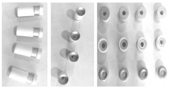 根據(jù)資料的參數(shù)和有關(guān)研究經(jīng)驗(yàn)報(bào)道, 本文試驗(yàn)研究中釬料選用無(wú)氧銅和Ag Cu28Ni1.5材料。為進(jìn)一步改善浸潤(rùn)性能, 被釬焊的母材———氧化鋁陶瓷件金屬化表面和金屬件都采用表面鍍鎳工藝。
