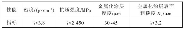 為保證氧化鋁陶瓷具有一定的強(qiáng)度和致密性, 須對(duì)其燒結(jié)溫度和密度做一定的要求。磨制的氧化鋁陶瓷表面粗糙度對(duì)金屬化層附著力起關(guān)鍵作用, 因此也有相應(yīng)的要求。據(jù)試驗(yàn)研究, 總結(jié)相應(yīng)性能指標(biāo)要求見(jiàn)表1。