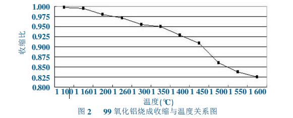 99氧化鋁陶瓷配方中主要添加少量的高嶺土、輕質(zhì)碳酸鎂、煅燒滑石等,添加量很低,在燒成過程中礦物的分解和失水等影響因素可以忽略不計(jì)。如圖2所示,為99氧化鋁陶瓷燒成收縮與溫度關(guān)系曲線,每個溫度點(diǎn)樣品保溫2h,根據(jù)曲線,99氧化鋁的燒成可以分為以下幾個階段。