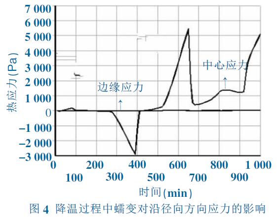 (1)在降溫過程中,試樣的溫度梯度造成收縮不均形成熱應力,高溫蠕變能夠有效降低熱應力,形成應力松弛。