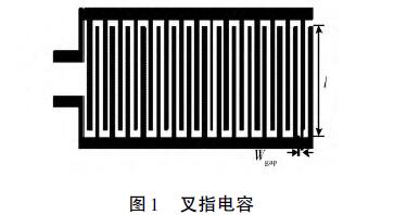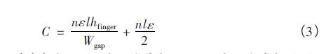 式(3)中,Wgap為又指電很間距,n為又指電很總數(shù),l為又指電很長(zhǎng)度,ε為復(fù)合物(感濕層吸收水分后的混合物)的介電常數(shù),hfinger為又指電很厚度。從而,根據(jù)式(1)和式(3),可以得到濕度傳感器的電容值(圖1)。