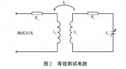 式中,Q表示傳感器的品質(zhì)因子。為了和濕度傳感器進(jìn)行無(wú)線耦合,需要一個(gè)帶有讀取天線的測(cè)試電路,其等效電路如圖2所示。當(dāng)讀取天線發(fā)射掃頻信號(hào)時(shí),當(dāng)掃頻信號(hào)的某一頻率和傳感器諧振頻率相等時(shí),傳感器電路發(fā)生諧振,天線的阻抗信號(hào)(包括實(shí)部、虛部、振幅、相位)將會(huì)發(fā)生變化。通過(guò)提取天線的阻抗信號(hào)就能獲取傳感器的諧振頻率值。