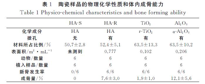 本文考察了不具備表面微孔的羥基磷灰石陶瓷 (HA-S),具備表面微孔的羥基磷灰石陶瓷(HA-R), 具備表面微孔的TiO2 陶瓷和氧化鋁 陶瓷的蛋白吸附 能力,并比較這些陶瓷材料的異位成骨能力。以期論 證蛋白質(zhì)吸附,鈣磷離子釋放和表面生物礦化在生物 材料異位骨誘導中的可能作用。